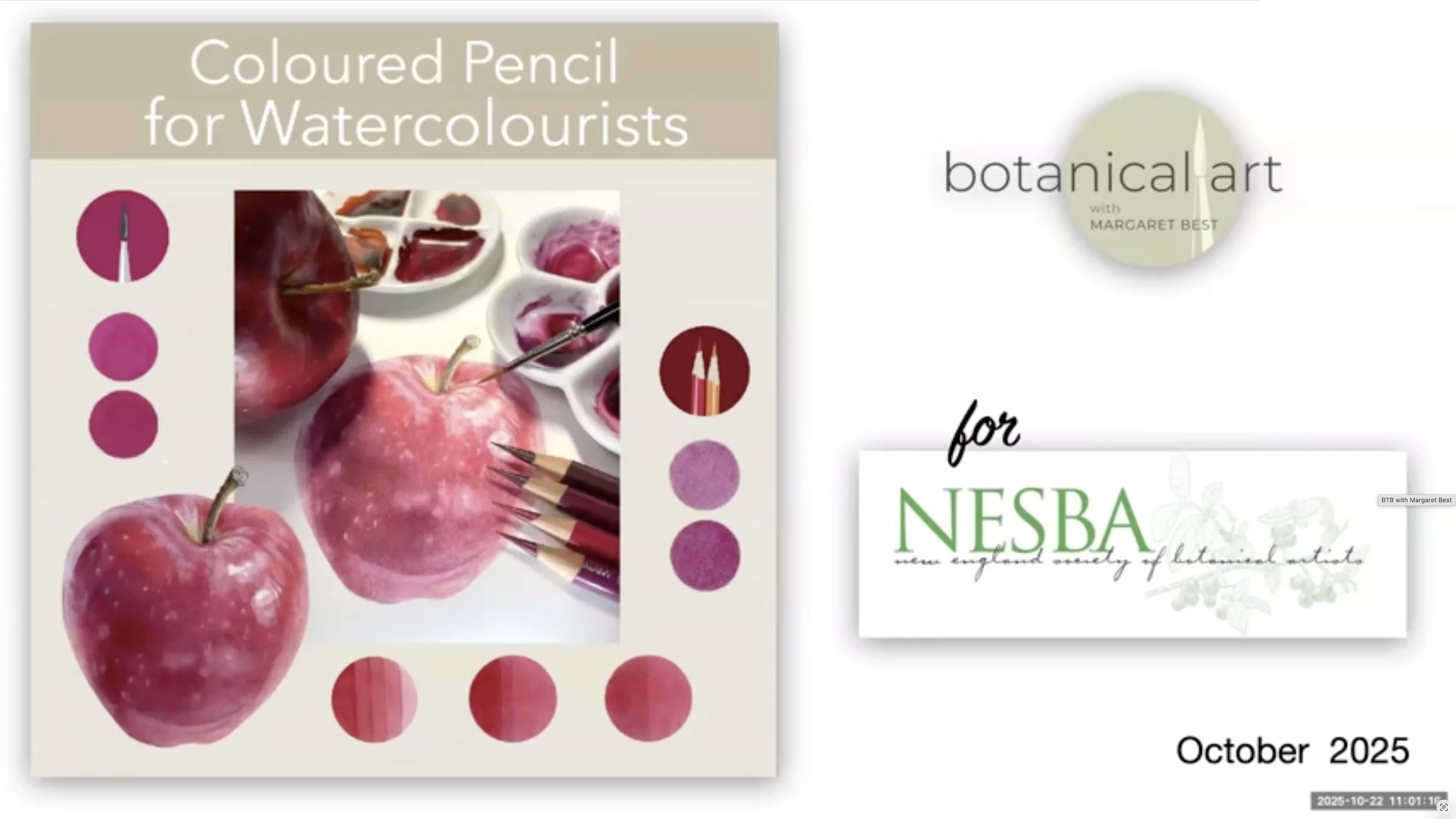 Renowned botanical artist Margaret Best presents an introduction to mixed-media techniques with colored pencil and watercolor. You can see her work on Instagram and https://www.bestbotanical.com, and learn more about her e-booklets on botanical art techniques at https://www.botanicalart.education